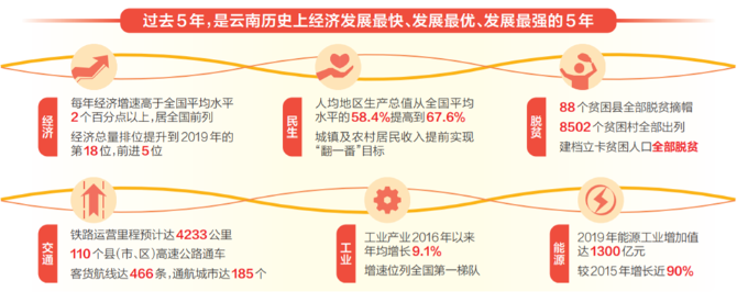 在即将过去的“十三五”期间,云南省经济发展不断提速、民生福祉不断提高、改革开放不断深化、生态环境不断改善,民族团结、边疆稳定的大好局面进一步巩固。