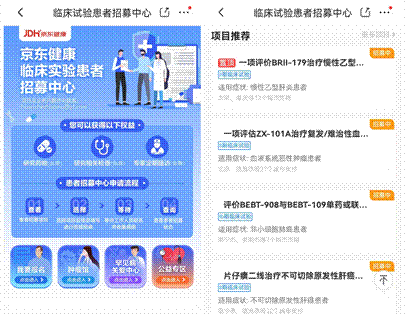 (用户登录京东App搜索“患者招募”或“临床试验”,即可登录专区页面)
