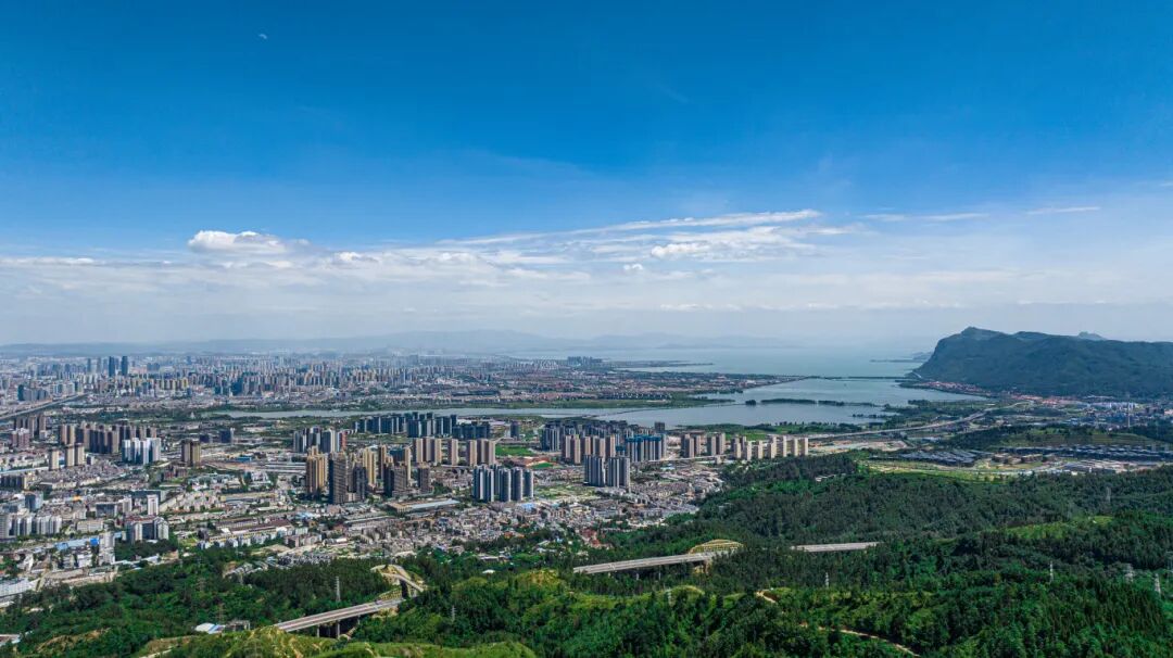 被山水环绕的昆明城。